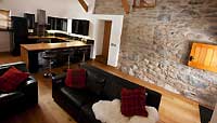 Modern living in a rustic barn near Bala, North Wales.