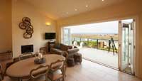 a magnificent, sun drenched terrace looking out to sea. There are four double
